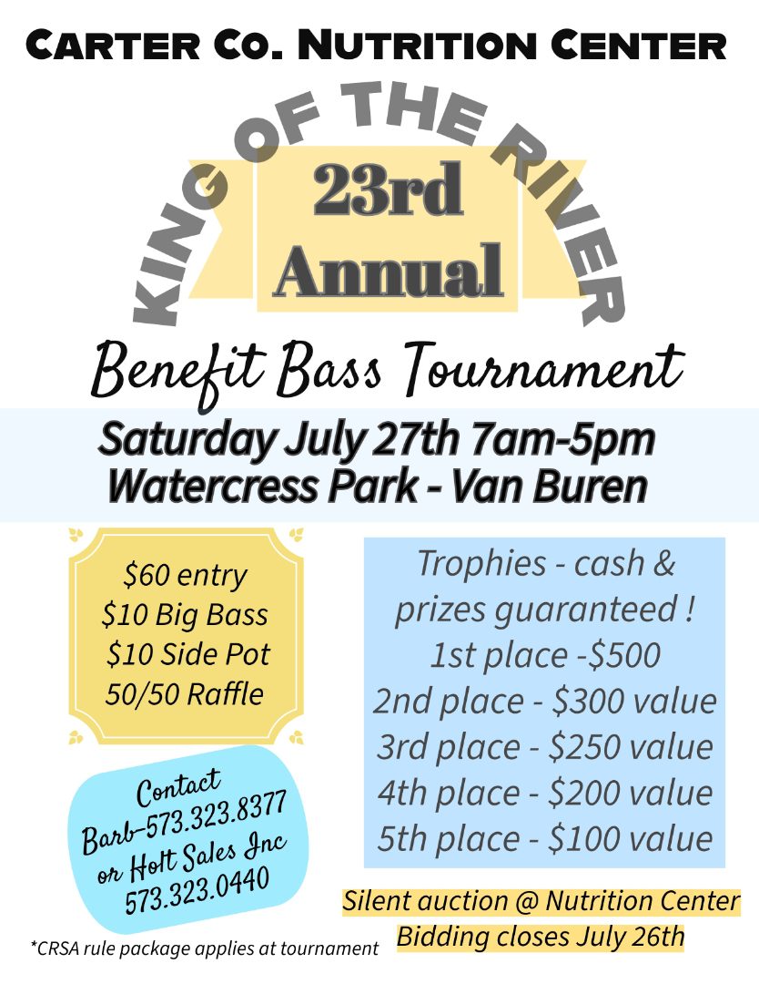 Carter County Nutrition Center 116 Ball Park Rd., Van Buren, MO, United StatesThe Carter County Senior Center is hosting a Chili Cook Off event March 8th, 2024. Judging begins @6PM. Entry fee is $20. Prizes are as follows: 1st Place- $100, 2nd Place-$50, 3rd Place- $25. After judging, there will be a chili supper available for purchase $7/person. Supper will include Hotdogs, Chips, Chili, Desert and […]