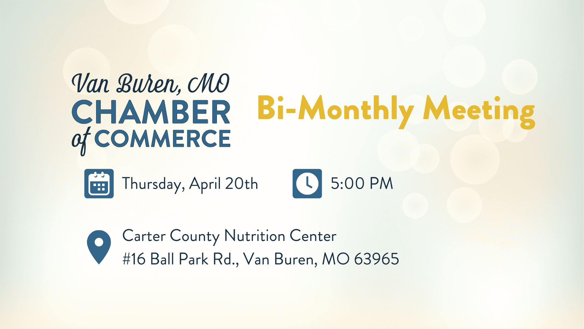 Carter County Nutrition Center 116 Ball Park Rd., Van Buren, MO, United StatesThe Van Buren Chamber of Commerce is excited to announce its next bi-monthly meeting to be held on Thursday, April 20 at 5 pm at the Carter County Nutrition Center, located at 116 Ball Park Rd, Van Buren MO. The guest speaker for the meeting will be Jason Lott, Superintendent of Ozark National Scenic Riverways […]